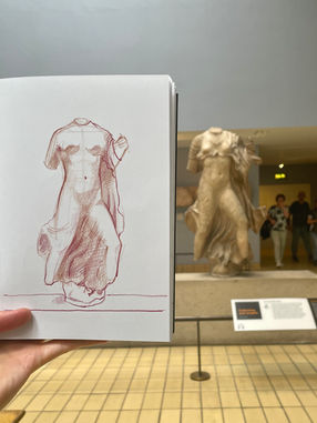 I like ancient Greek artworks very much because those figures are very strong and flexible. The British Museum provided a chance to see artworks up close. I went to the museum with my sketchbook and painting materials like coloured pencils, pens and makers.