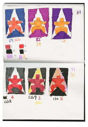 I have explored colors, the capture of movements, the design of abstract patterns, and the study of human muscle anatomy. I sum up all this knowledge to create the final work. I chose my favorite sports: running, rope skipping, weightlifting and stretching. Then keep simplifying.